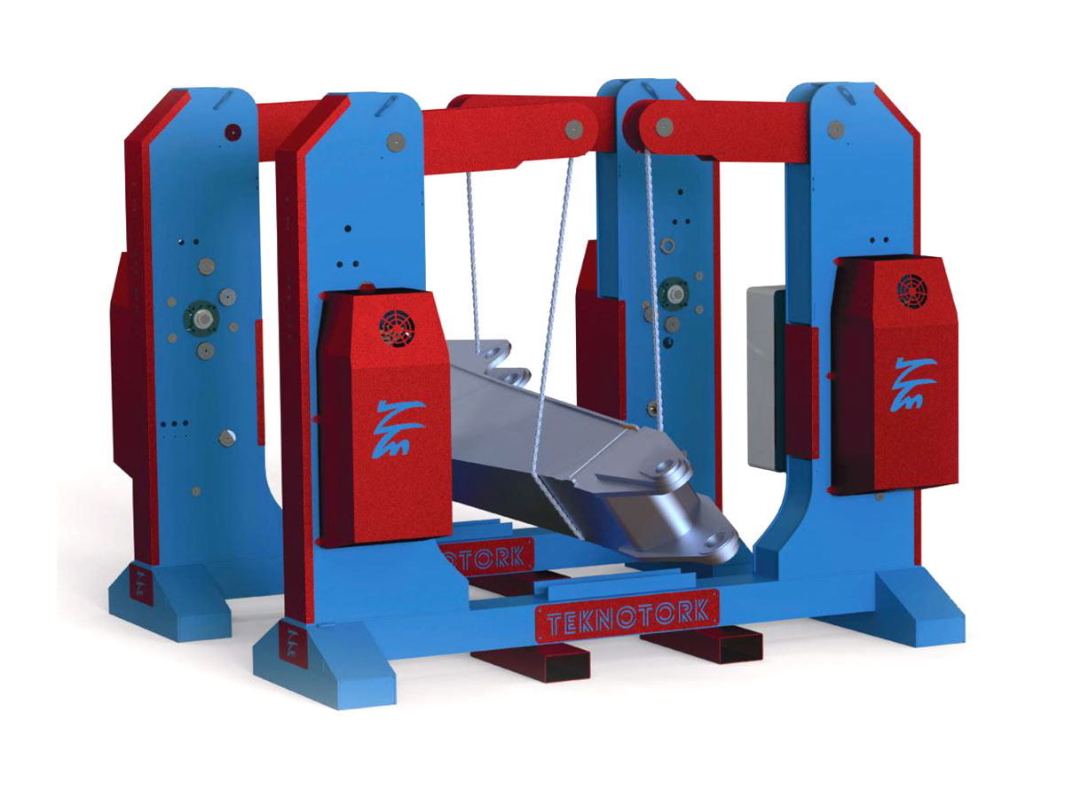 The chain type turning device is specially designed to ensure fast and safe rotation of large and heavy loads such as H, I, T and W beams, pipes, welded structures, and steel constructions. This innovative solution guarantees maximum safety without the need for crane usage.