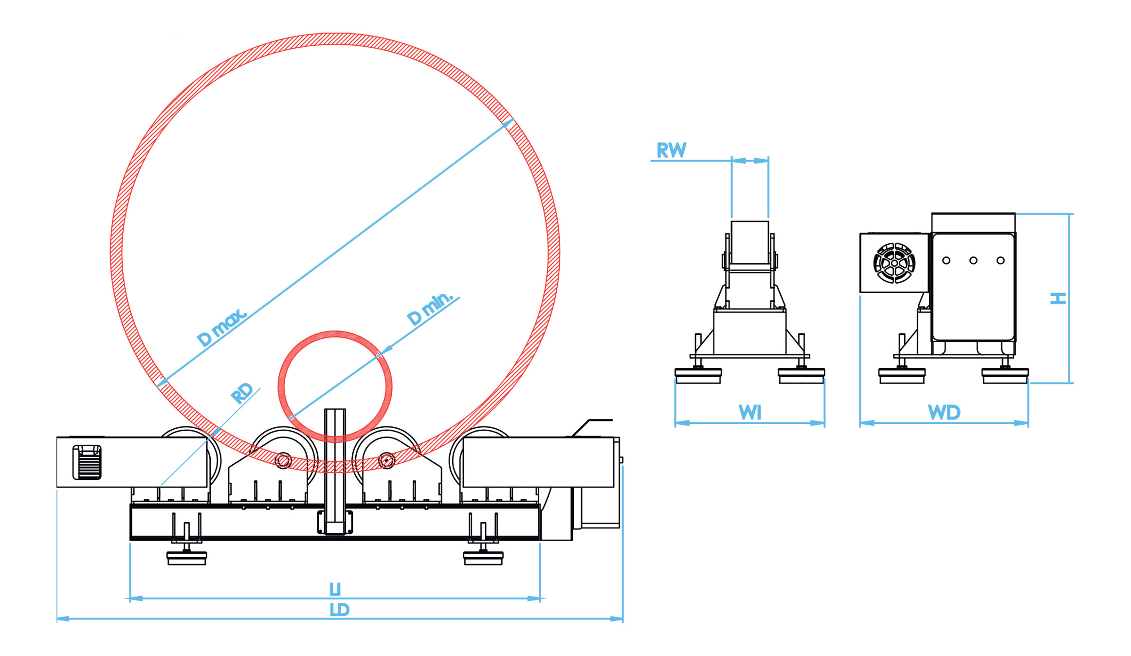 | Roller Diameter (mm) RD | 200 | 250 | 300 | 300 | 350 | 400 | 450 |